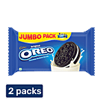 Oreo: milk's best friend for over 100 years! Cadbury Oreo Vanilla creme sandwich biscuit consists of two chocolatey biscuits with a rich vanilla creme filling between them. Cadbury Oreo creme biscuits are made with cocoa, which defines their unique chocolatey flavour. Add this crunchy delight to your snacks and gift yourself rich and smooth joy. Oreo biscuits are perfect for snacking or enjoying as a treat at any time of the day. Twist, lick and dunk! Enjoy Oreo sandwich cookies with a glass of milk or add them to your favourite recipes such as cakes and milkshakes! Add a scoop of vanilla ice cream to Oreo biscuits to make your own creamy dessert! Available in single & family/ combo packs. This biscuit pack is suitable for vegetarians.
