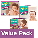 Pampers Active Baby Tape Style Diapers - L 78 pcs + M 90 pcs + XL 56 pcs
