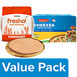 fresho! Whole Wheat Pizza Base - Preservative Free Fresho brings to you Whole Wheat Pizza Base, a healthy alternative to fighting your guilt of adding on that extra pound. Let's bring some more joy to pizza nights and parties with this pizza made from whole wheat. Bake it at home by topping it with your favourite veggies. You can also get cheesy by sprinkling your favourite cheeses and drizzling a hint of spice and herbs to give it the ultimate taste. Get your hands on some pizza sauces or make it at home with some fresh tomatoes. Become the chef you always wanted to be with the help of Fresho freshly Baked range. We are true to our choice of ingredients and keep the food we provide you preservative-free.