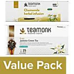 Teamonk Chamomile Herbal Infusion 200 g (100 Bags) + Jasmine Green Tea 50 g (25 Bags), Combo 2 Items
