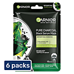 Garnier Pure Charcoal Black Serum Face Sheet Mask - Tightens Pores, 6x28 g Multipack