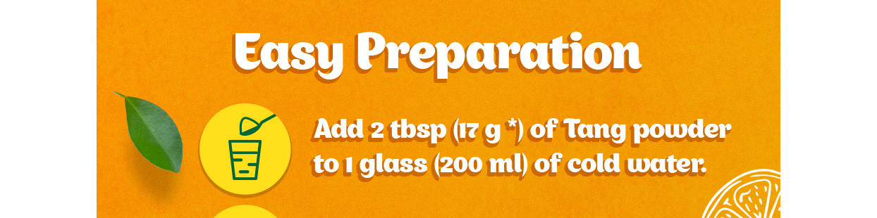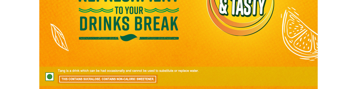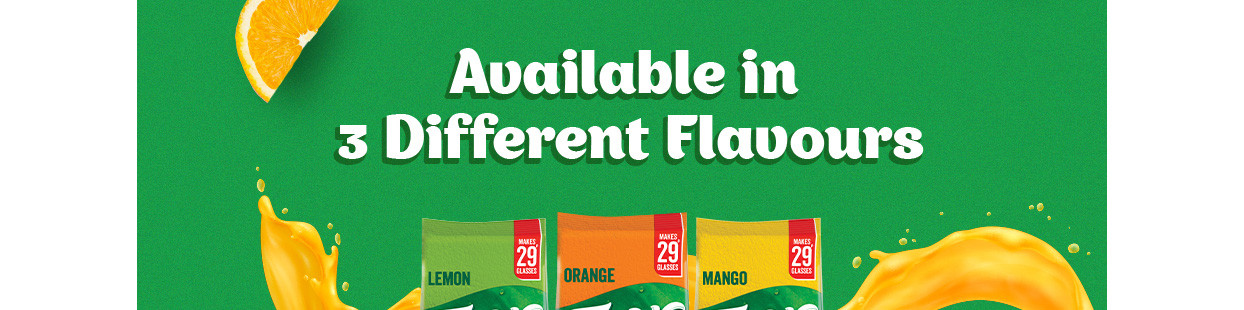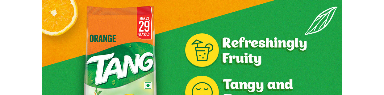 Tang comes in tasty fruity flavours which helps keep you refreshed during summer. Available in three different refreshing flavours i.e, orange, mango and lemon. Buy Now – Tang - Drinks Break for Kids. Disclaimer: Tang is an occasional drink and cannot be used to substitute water. This contains sucralose. Contains non-caloric sweetener.