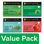 Soulflower Cool Aloe Vera + Peppermint + Pure Tea Tree + Juicy Red Tomato Soap (150 g each), Combo 4 Items