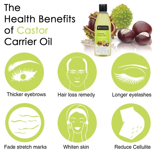 For Hair: Castor seed oil is commonly used for giving a strong, healthy, attractive shine to your hair. It gives overall nourishment to your hair, restores and strengthens damaged strands, treats scalp infections and prevents premature greying. This oil is also widely used and known for healthy and thicker eyebrows.