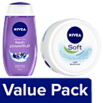 Nivea Fresh Powerfruit Shower Gel Body Wash, 250 ml + Soft Light Moisturiser, 300 ml, Combo 2 Items