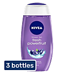 Nivea Fresh Powerfruit Shower Gel Body Wash With Antioxidants & Blueberry Scent, 3x250 ml (Multipack)