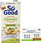 HOME>BAKERY, CAKES & DAIRY>NON DAIRY>DAIRY FREE (VEGAN)>SO GOOD Cashew Milk - Unsweetened, Plant Based Beverage 1 L + Free Uber Voucher with 1pc