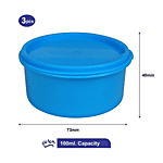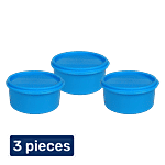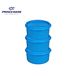 Princeware Store Fresh Round Container - Plastic, Durable, BPA Free, Blue, 3 x 100 ml Multipack