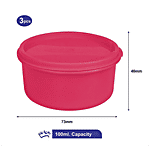 Princeware Store Fresh Round Container - Plastic, Durable, BPA Free, Pink, 3 x 100 ml Multipack