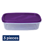 Princeware Store Fresh Rectangular Package Container - Plastic, Durable, BPA Free, Voilet, 3 x 475 ml Multipack