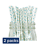 Se7en Polka Dot Paper Straws - For Birthday Parties, Weddings, Sky Blue, 2 x 25 pcs Multipack