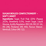 Sugar, Fruit Pulp (25%) (Papaya 24.5%, Strawberry 0.5%), Invert Sugar, Liquid Glucose, Acidity Regulators (INS 330, INS 331 (Fit), INS 296), Thickener (INS 440), Flavour (Nature-Identical), Colour (INS 122).
