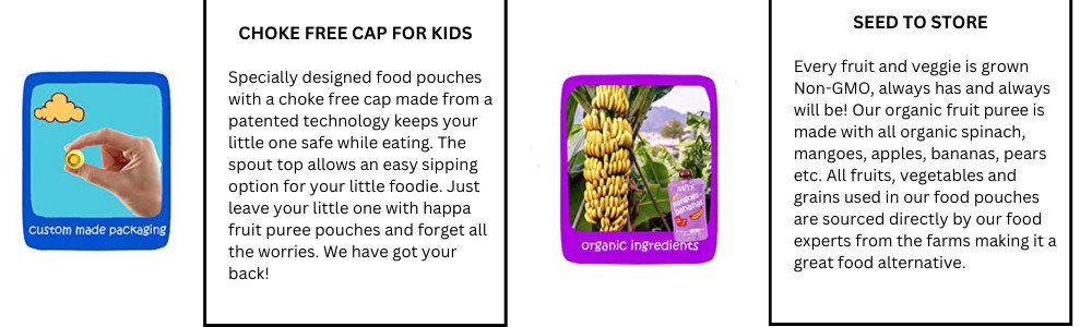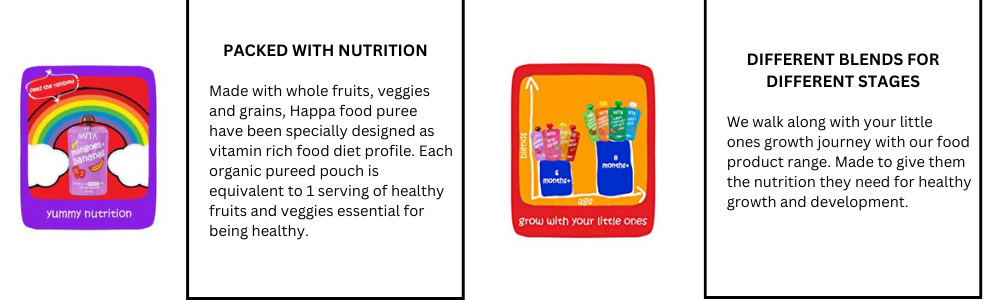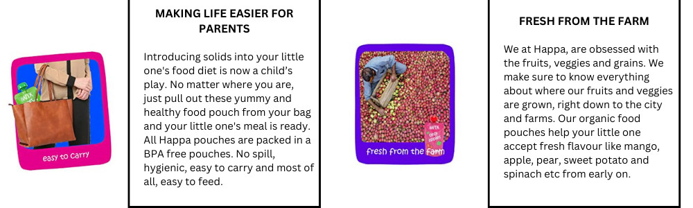 Packed in a hygienically sealed, easy-squeeze pouch, it is convenient for feeding at home or while travelling. Free from gluten, dairy, nuts, and other common allergens, this clean-label recipe provides safe, wholesome nutrition for your little one. Trusted by parents in over 30 countries, Happa ensures global quality and safety standards in every pouch.