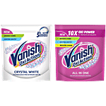 White clothes often lose their shine and become dull over time. When it comes to white clothes, it’s a challenge to remove tough stains and keep them shining like new wash after wash. Vanish, gives your white clothes shine like new even after 50 washes. Its chlorine bleach-free oxi action gives brighter whites & removes tough stains without causing damage. Vanish, is an expert fabric whitener with added optical brighteners that brighten your whites giving them shine like new even after 50 washes. It removes even the toughest dried-on stains, ensuring a stain-free laundry and its chlorine bleach-free formula ensures no damage or dullness is caused even after repeated washes. It is safe to be used on all fabrics. Available Variants: Vanish Crystal White Liquid- 180ml & 800ml; Vanish Crystal White Powder - 100g & 400g.