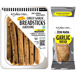The Baker's Dozen Garlic Bread - Wholewheat 160 g + Chilli Garlic Grissini Breadsticks 100 g, Combo 2 Items