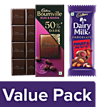 Cadbury Bournville Rum & Raisin Dark Chocolate 80g+ Dairy Milk Fruit & Nut Chocolate 36g, Combo 2 Items
