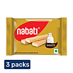 Nabati White Milk Vanilla Flavoured Cream Wafer Biscuits - Crispy, Crunchy, Vitamin A, 3X30 g Multipack