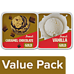 Amul Ice Cream - Vanilla Gold + Caramel Chocolate Gold, Each 1 L, Combo 2 Items