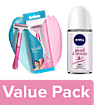 No Question askedbb Combo Nivea Pearl Roll On 50 ml & Venus 3 Blade Hair Removal Razor For Women 1 Pc