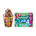 No Question askedbb Combo Whisper Sanitary Pads XL Plus Wings,15 pcs + Kwality Walls Frozen Dessert,700 ml