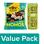 bb Combo Wow! Momo Jain Momos, 10 pcs + Borecha Icey Lemon Ginger Sparkling Tea, 330 ml, Combo 2 items