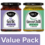 ADF Soul Garlic Pickle In Olive Oil, 275 g + Green Chilli Pickle In Olive Oil, 265 g, Combo (2 Items)