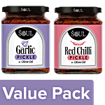 ADF Soul Garlic Pickle In Olive Oil, 275 g + Red Chilli Pickle In Olive Oil, 265 g, Combo (2 Items)