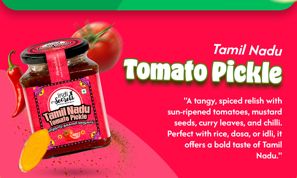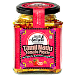 Indulge in the rich and tangy flavours of Tamil Nadu with IndiSecrets Tamil Nadu Tomato Pickle. This authentic delicacy is crafted with sun-ripened tomatoes, lusciously blended with Sesame Oil for a distinct taste. The perfect balance of Iodized Salt, tangy Tamarind, aromatic Chilli Powder, and zesty Garlic heighten the medley of flavours. Mixed Spices, Mustard Seeds, Dry Chillies, and Curry Leaves elevate the pickle's complexity, creating a harmonious symphony of tastes. A true embodiment of Tamil Nadu's culinary heritage, this pickle adds a delightful punch to your meals, making it an irresistible addition to your dining experience.