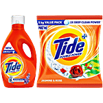 Tide Jasmine & Rose Detergent Powder, 5 kg + Power Gel Liquid Detergent, 1 kg, Combo (2 Items)