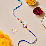 No Question askedDaivya Sparsh by bigbasket Blue Jewel Pendant Rakhi With Kumkum & Rice