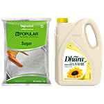 No Question askedbb Combo Dhara Oil - Sunflower 5 L, Can + BB Popular Sugar 1kg