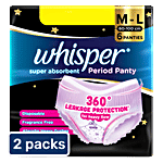 Whisper Super Absorbent Period Panty, 360 Degree Leakage Protection For Heavy Flow - M-L, 2 x 6 pcs Multipack