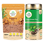 No Question askedbb Combo Organic India Tulsi Green Tea Classic 100g+ Organic Jaggery Powder 500g