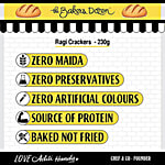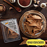 The Baker's Dozen's Ragi Crackers are delightfully crunchy, baked ragi chips infused with roasted garlic. Free from maida and preservatives, these wholesome crackers offer a flavourful, healthy alternative for snacking. Perfectly versatile, they pair wonderfully with any dip of your choice, making them an ideal choice for guilt-free indulgence at any time of day.