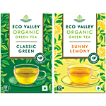 Eco Valley Classic Green + Sunny Lemony Organic Green Tea, 25 Bags x 1.7 g Each, Combo (2 Items)