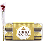 bb Combo Ferrero Rocher Chocolate Gift Pack, 16 pcs + fresho! Rose - Red Flower, 1 pc, Combo (2 Items)