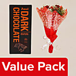 bb Combo Amul Dark Chocolate 150 g & Three Stem Red Rose Bouquet, Combo 2 Items