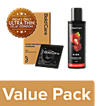 Bold Care Ultra Thin Delay Condoms,10 pcs + Strawberry Intimate Lube & Massage Gel,100 ml