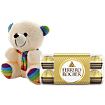 No Question askedbb Combo Ferrero Rocher Hazelnut & Milk Chocolate 200 g + Just Bear Stripe Soft Toy 1 pc