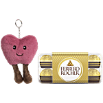 bb Combo Ferrero Rocher Crisp Hazelnut Chocolate 200g+ Smiley Heart Plush Keychain Cherry, Combo (2 items)