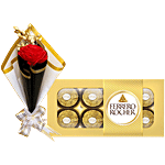 bb Combo Ferrero Rocher Hazelnut & Milk Chocolate 100g + Eternal Bloom Red Royale Bouquet, Combo (2 items)