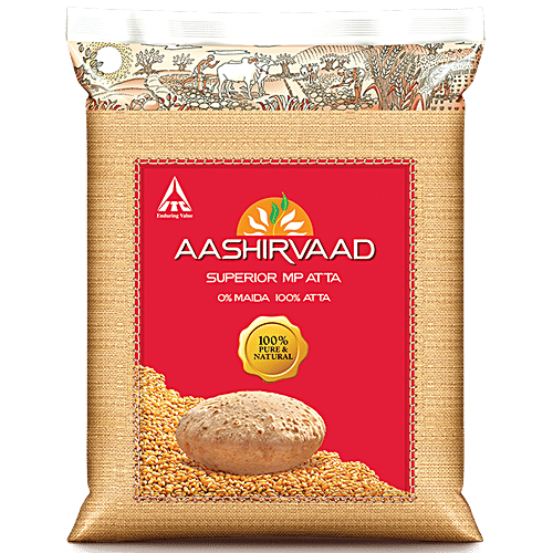 The Aashirvaad whole wheat atta is made of zero per cent maida and 100% atta, thus making it a healthier option as compared to other flours. It is extremely nutritious and is packed with a lot of health benefits. The best part about Aashirvaad atta is that the texture of the atta flour results in fluffy and soft rotis that are being made at home. The atta is made by grounding using chakki that gives it the perfect blend of color, taste and nutrition. Top quality grains are used to make the Ashirvaad atta. This results in excellent taste, texture and nutrition of the end product that you are making. The brand sells whole wheat atta in different packages. If you are buying the aashirvaad whole wheat atta 10 kg online, the price would be Rs 383. You can also buy smaller quanitties if you first wish to test the product. Aashirvaad atta 2 kg pouch is priced at Rs 103 on bigbasket. From 1 kg of atta to 10 kg Aashirvaad atta pouch you can find the whole range on our online platform.