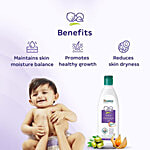 Himalaya Baby Massage Oil is a pure, mild, and nourishing formula that combines the benefits of olive oil, winter cherry, vitamins, and aloe vera to revive your baby's delicate skin. Enriched with natural ingredients, this outstanding massage oil intensely moisturises and strengthens your baby's bones, aiding in their overall development and growth. Daily massages with this herbal oil nourish the skin, minimise rashes and allergies, and promote a healthy, smooth complexion. Clinically tested for gentleness, this oil is free from mineral oil and animal fat, making it a wholesome choice for your baby's skincare routine. Powered by vegetable oil and herbs, it provides a soothing and protective experience, leaving your little one's skin soft, supple, and radiant.