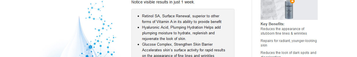 Featuring a unique combination of Retinol SA, Glucose Complex and Hyaluronic Acid, helps to moisturise and renew the look of skin throughout the day, smooth wrinkles fast and diminish the look of age spots.