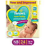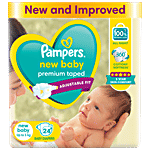 Pampers provide gentle protection and a full night's sleep to your little miracle, so mothers and doctors have always trusted them. Presenting New Pampers new baby taped diapers that provide your baby 5-star skin protection! How do you ask? It has an adjustable taped fit which you can custom-fit as per your baby’s need. The sides & waist are stretchable with 360-degree cottony softness providing the best comfort for your baby’s skin. Its extra dry layer helps prevent leakage by spreading the baby’s urine evenly. Pamper's unique magic gel technology absorbs baby’s pee full night for up to 12 hrs. These are our best Pampers taped diapers ever!