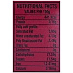 Wheat Flour(71%), Wheat Fibre, Sugar, Edible Vegetable Oil, Milk Solids, Salt, Suji, Yeast, Invert Syrup, Butter, Emulsifier (471), Flour Treatment Agent (1100), Spices(Cardamom & Its Oil - 0.09%) and Antioxidant (300) (per 10 g) Calories: 45 kcal Sodium: 0 mg Total Fat: 1 g Potassium: 0 mg Saturated: 0 g Total Carbs: 7 g Polyunsaturated: 0 g Dietary Fiber: 0 g Monounsaturated: 0 g Sugars: 2 g Trans: 0 g Protein: 1 g Cholesterol: 3 mg