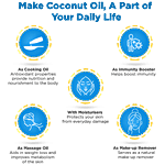 Combining 135+ years of trust of Dabur with the purity and nourishment of the finest hand-picked and sun-dried coconuts available in India, we created “Anmol Coconut Oil”. The fresh coconut fragrance is kept intact using a tamper-proof seal and multi-stage filtration process. The regular use of edible Coconut Oil helps provide the required antioxidants and boosts immunity. Coconut Oil has traditionally been used as a massage oil and helps improve skin metabolism.