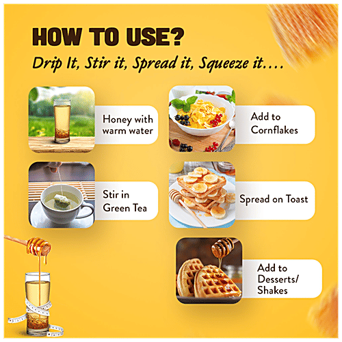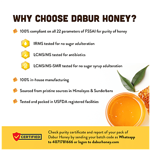 This honey is one of the healthiest substitutes for refined sugar and is made out of wholesome natural goodness. Dabur procures its honey from purest of sources. While you buy 1kg Dabur honey online on bigbasket, explore the variety of choices you have in terms of grams. Right from a 100 gram bottle up to a 1 kg bottle, the options are plenty. The Dabur honey 1 kg price is only Rs. 357 and can be used for a long time. Not only can you use this honey in your tea or coffee, you can also add it to your cereal, milk or anywhere else where you use sugar to sweeten your dish. You will find a variety of healthy recipes that use honey instead of sugar in refined form as an ingredient.