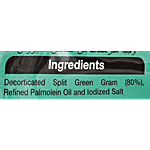 Dehusked Split Green Gram (Moong) (76%), Refined Palmolein Oil, Iodised Salt(1.2%) And Black Salt (0.01%)