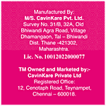 Manufacturer Name & Address: M/S.Cavinkare Pvt Ltd, Survey No 31/B, 32A Bhiwandi Agra road, Village Dhamangaon Tal-Bhiwnadi Dist Thane,-421302, Maharashtra, LIC NO.1001202200077